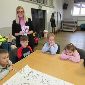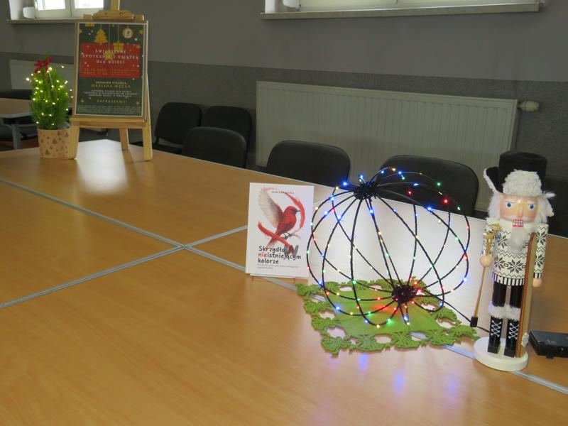 Dzień przed Wigilią Bożego Narodzenia odbyło się spotkanie autorskie dla dzieci z Marleną Męcką, poświęcone książce „Skrzydła w nieistniejącym kolorze”. Pisarka w ciepłej, świątecznej atmosferze opowiadała o swojej twórczości i przesłaniu płynącym z książki. Niezwykłą niespodzianką był ogromny, specjalnie opracowany i wydany na tę okazję prezent – kolorowanka z mottem z książki. Dzieci z wielkim entuzjazmem przystąpiły do kolorowania, a następnie wspólnie odczytały przesłanie, które stało się pięknym podsumowaniem spotkania.